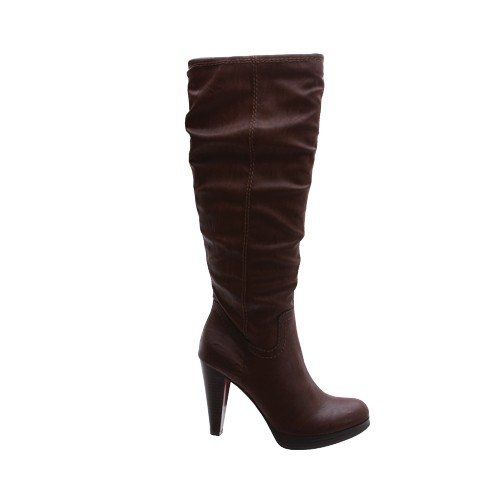 - A tall fashion boot with a slightly slouchy faux leather upper
